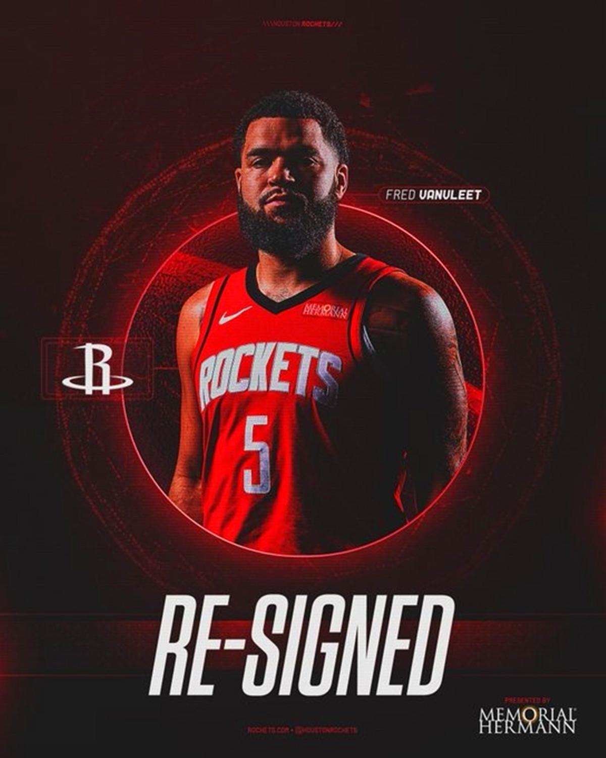首先是火箭队官方宣布,球队与范弗利特达成了一份续约合同。