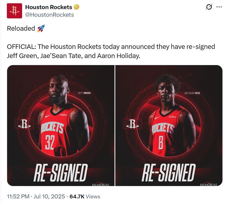 5年1.22亿+2年5000万,火箭队官宣签5人!KD领衔休城全新14人豪阵